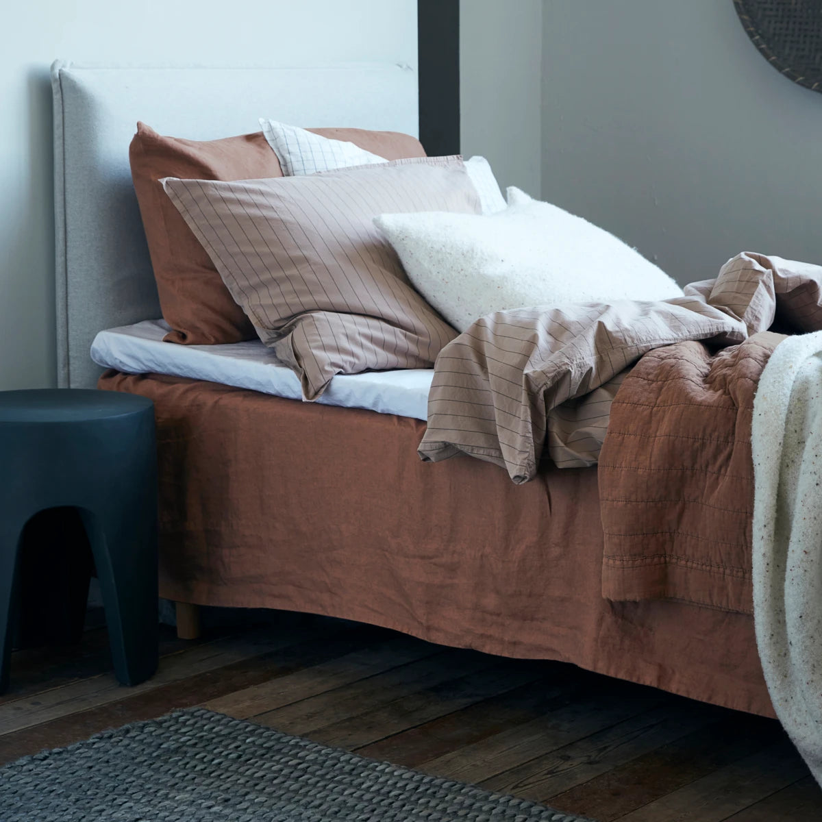 Use the BNGunhild bed skirt to transform your bedroom into a calm space with a streamlined and on-point look. byNORD has designed it using linen which has been stonewashed to give it an extra soft but still tactile feel. When details matter, use the bed skirt to cover the box spring and bed frame to conceal the frame and feet of your bed and what is perhaps stored underneath. The wide Oxford frame adds the finishing touch to make your bed look well put together. Pair it with our quilt in the same matt and soothing berry colour or a different colour for a personal twist. If you like, the bed skirt also makes a wonderfully light bedspread.