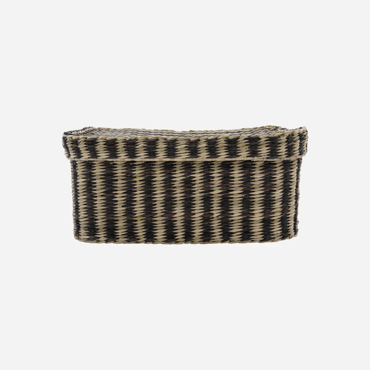 Organise your home with this set of 2 rattan boxes in 2 sizes from House Doctor. With casual stripes and lids, they meet all your storage needs and add detail to your home decor while keeping the items out of sight. Gather your papers in your home office or store your arts and crafts products in your living room. Wherever you want to declutter and tidy things up, that is the spot for these baskets. Functional and with a natural appeal, the baskets give your home a refresh as you move them around to meet your storage needs.