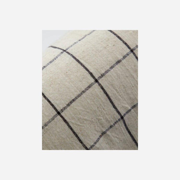 Introduce a subtle yet striking accent to your living space with this cushion cover. Its off-white hue is beautifully complemented by woven black stripes, offering a modern design that seamlessly integrates into various decor styles. Crafted from a soft blend of cotton and linen, it brings both comfort and style to your home. This cushion cover not only offers aesthetic appeal but also the assurance of Oeko-Tex certification for quality.