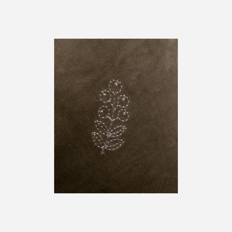 This brown cushion cover in soft cotton velvet brings playful embroidered details and warmth to your home. Its unique, off-white motifs invite both modern flair and a playful touch to your living room or bedroom.