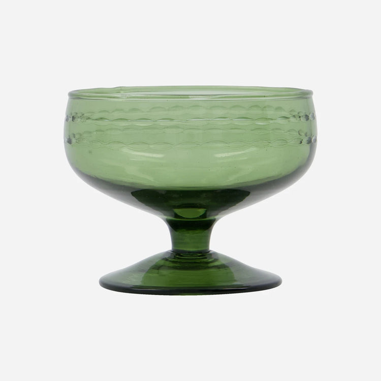 Serve your ice cream or any other dessert the proper way. This stemmed dessert bowl from House Doctor is mouthblown and comes in a classic shade of green to give your table setting the final touch to take it from regular to ravishing. With handmade detailing, this dessert bowl highlights anything you want to treat your guests to. From ice cream to trifle and fruit salad. Use the green colour as an accent on the table among clear glassware or create a whole theme with green everything.