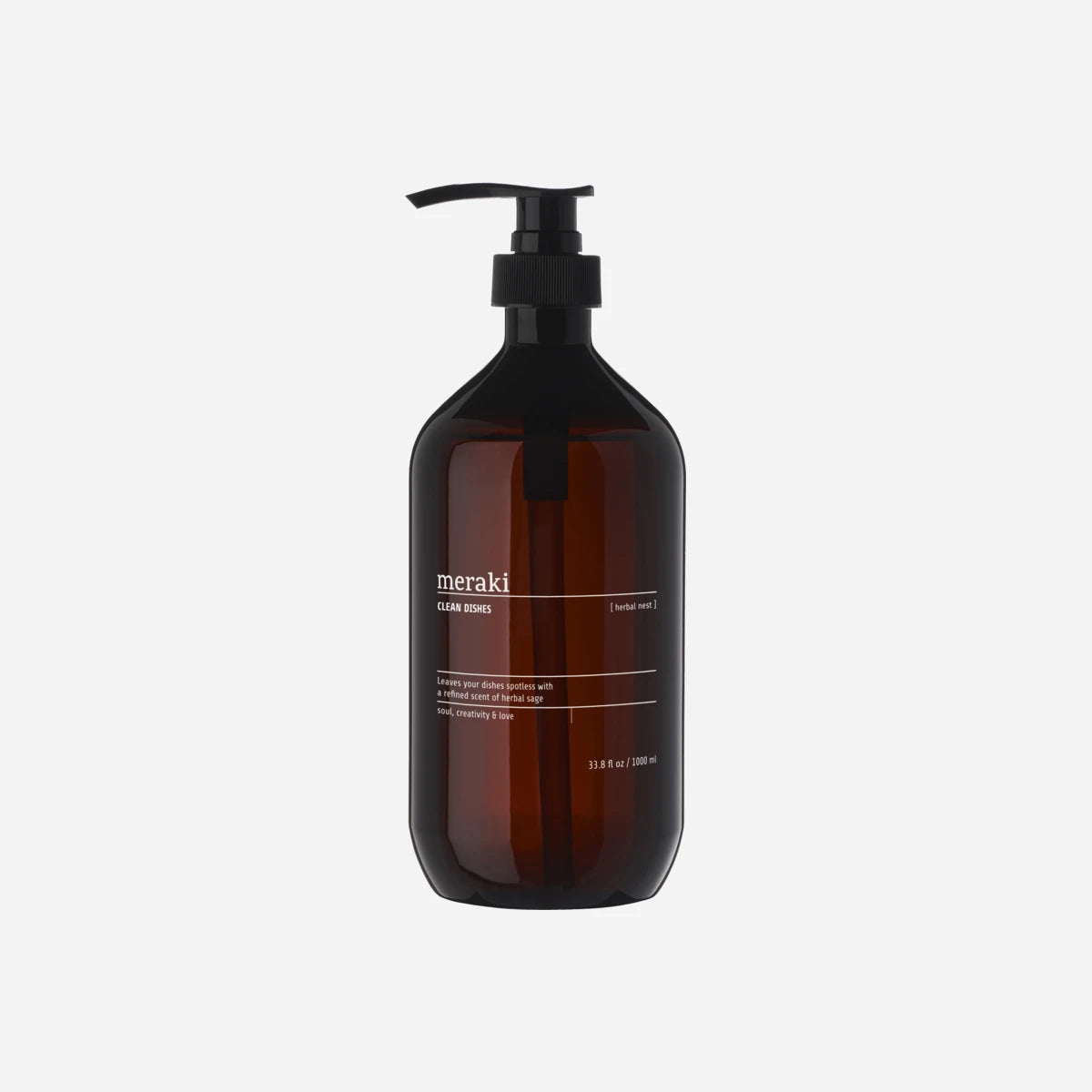 This dish soap from Meraki is called Herbal Nest and carries the Nordic Swan Ecolabel. Thanks to the pump design, it is easy to get the right dosage for your needs and a little goes a long way. Enjoy the soft foam of this dish soap with a light, herbal scent with notes of sage, citrus and musk. Design and functionality come together in this bottle which you can easily leave out on the kitchen counter. Use 2 ml dish soap for 5 L water. The dish soap may not be used in the dishwasher.