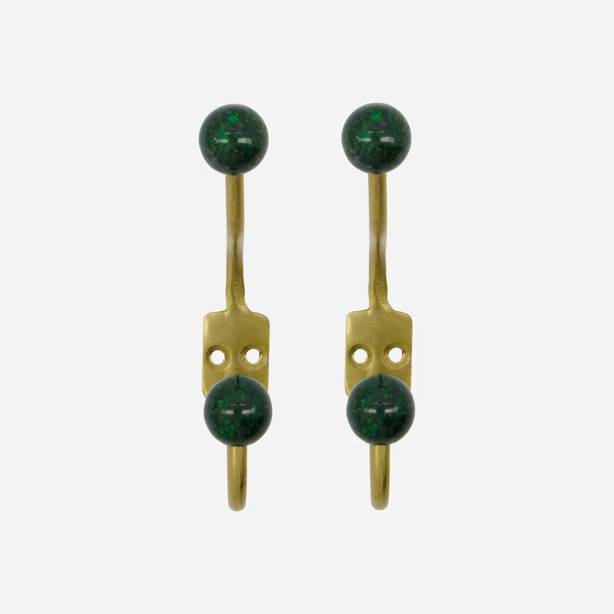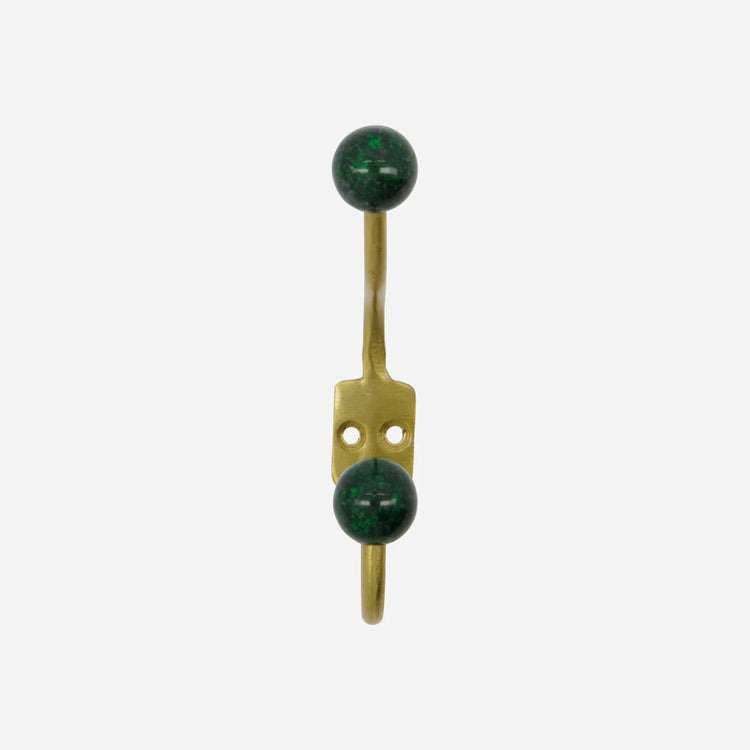 Add a decorative pop of colour to your hallway or bedroom with this set of two handmade hooks. The classic curved metal design features vibrant green ball accents, bringing both elegance and personality to your interior. Use them to hang coats, scarves or accessories - a stylish, functional twist anywhere you choose.