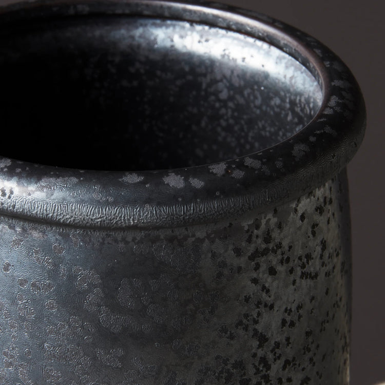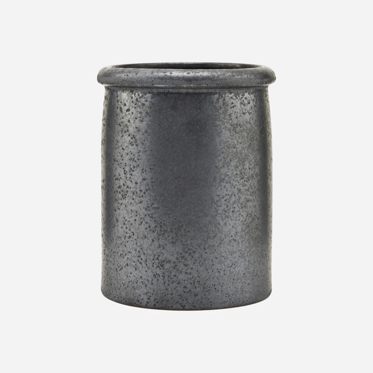 Keep your kitchen utensils handy and organised with the Pion jar from House Doctor. It is made of porcelain and finished with a dark, reactive glaze for a one-of-a-kind look. The burning process creates the matte surface that looks almost oxidised. You get a truly unique utensil jar with room for the everyday kitchen tools you need for cooking. It is a stylish addition to your kitchen and will complement any kitchen countertop. Be it wooden, steel or granite. Due to the matt texture of the glaze, scratches might occur over time as you use your Pion item. This simply adds to the charm and rugged appeal of the design.