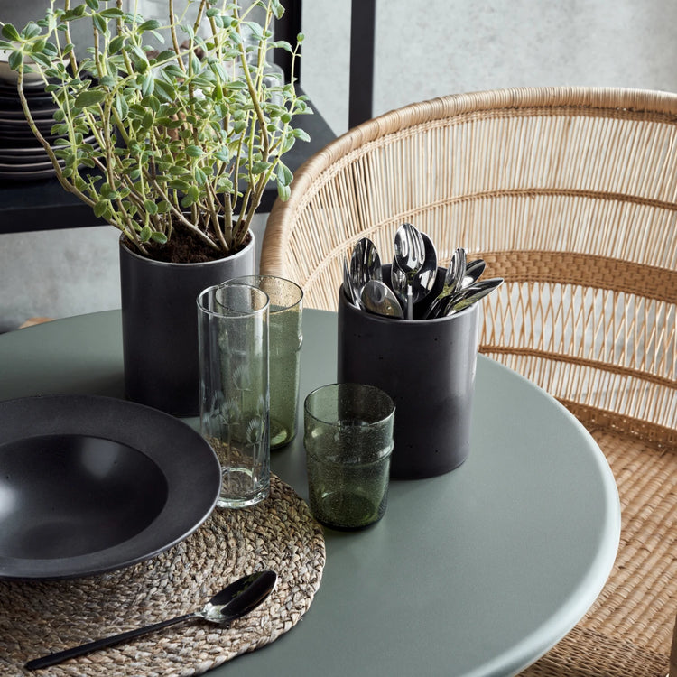 Use the Rustic jar from House Doctor to organise your kitchen utensils in style. The stoneware design is finished with a dark grey glaze for a casual touch and a look that fits any interior style. Get functional and put your spatulas, whisks and wooden spoons on display on the kitchen counter and have them within reach for everyday cooking. You could even use the jar for serving sauces or soups. Are you not the cooking kind? Use the Rustic jar for your herbs, gather your cutlery in it or fill it with your coffee capsules. Due to the nature of the glaze and surface, scratches might occur over time as you use your Rustic item. This simply adds to the charm and rugged appeal of the design.