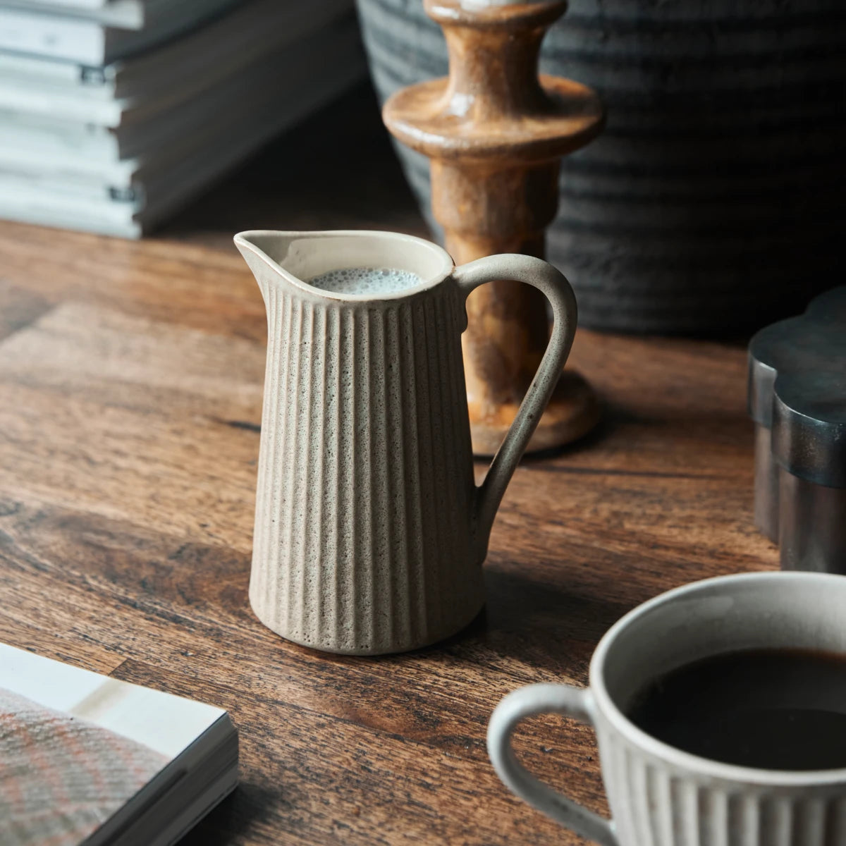 Using a small jug for milk or sauce adds the final touch to your table arrangement. This small jug from House Doctor showcases a timeless and casually elegant design with a ribbed surface. Matt on the outside and glossy on the inside, it brings subtle detailing to your table - especially if you pair it with plainer, more everyday dinnerware. With a design this timeless, it works equally well for the afternoon coffee break as it does for serving sauce on dinner night.