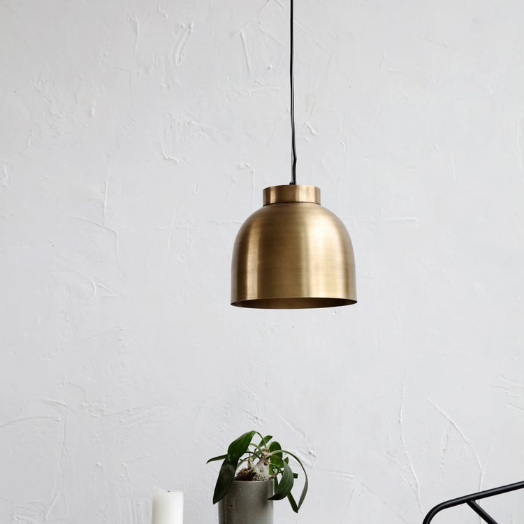 Add elegance and style to your home with the small Bowl pendant lamp from House Doctor. Made of brass with a golden finish, it is timeless and stylish enough to suit any kind of interior style. Hang the small lamp above a small dining table, in your hallway or use a few of them in a row in the kitchen. With its industrial look and round shape, this lamp adds equal parts softness and edge to your home décor.