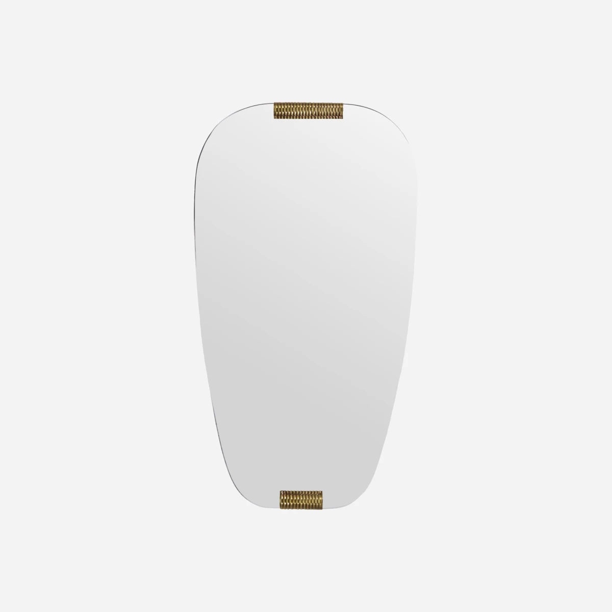 This handmade oval mirror brings elegance and a hint of art deco to your home. Golden clips at the top and base add a unique, decorative flair to the clear glass, making the piece stand out wherever you hang it. Let the soft, rounded form balance your bedroom or hallway, perfect for a quick outfit check or as an eye-catching detail among your décor.