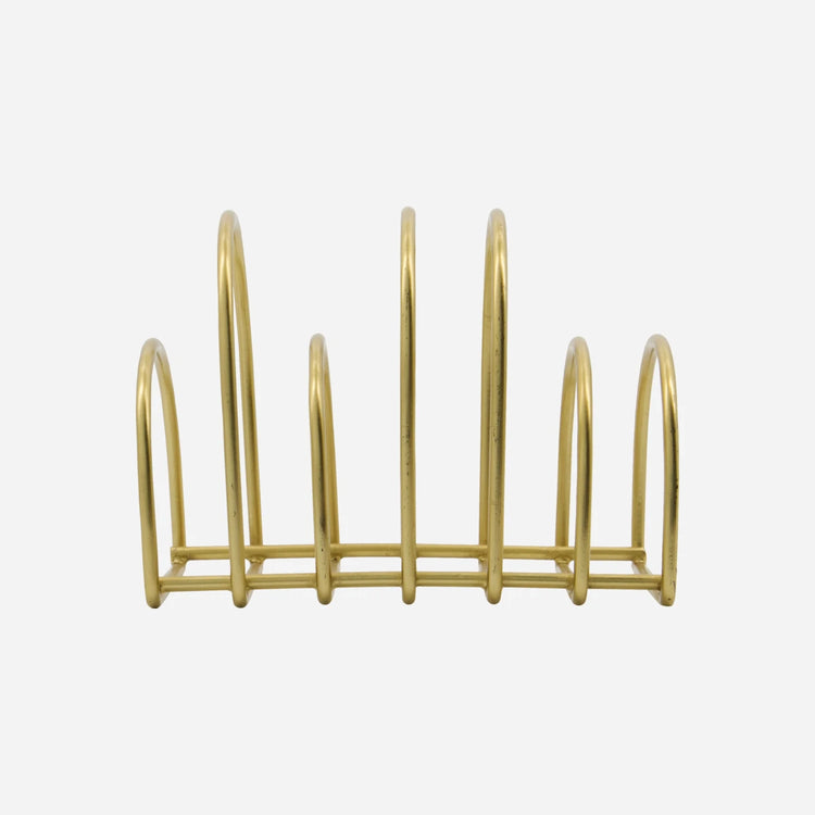 Enhance your workspace with this elegant document holder, perfect for organising notebooks, letters, or photos. Crafted from iron with a brushed brass finish, it can also be wall-mounted as a stylish mini shelf.- Iron with brushed brass finish- Versatile use and placement- Can be wall-mounted- Adds a touch of eleganceTransform your home office with this exquisite piece.
