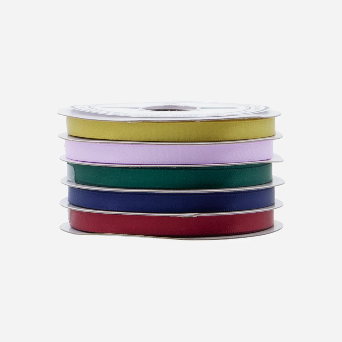 Add a personal touch to your gift wrapping with this set of satin ribbons in five vibrant colours: gold, purple, green, blue, and red. These double-sided ribbons are perfect for creating beautifully wrapped gifts that stand out. Crafted from high-quality polyester, they offer a smooth and elegant finish. Pair them with your favourite wrapping paper for a cohesive and stunning presentation.