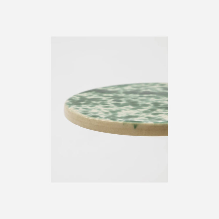 Introduce a splash of colour to your dining table with this set of two ceramic serving boards. These round stoneware pieces feature a striking hand-painted green splash pattern that adds a touch of artistry to any meal. Ideal for serving tapas, cheese, or desserts, they are perfect as a sharing board for two, pairing beautifully with tea, coffee, or a glass of wine. Their modern design and practicality make them a delightful addition to your table setting.