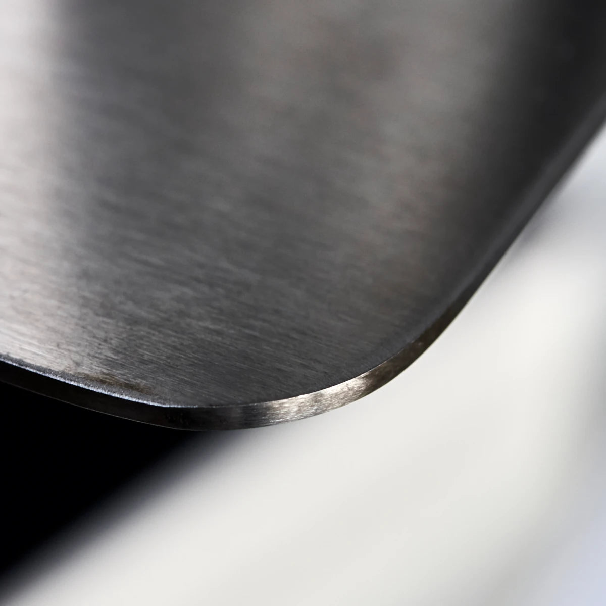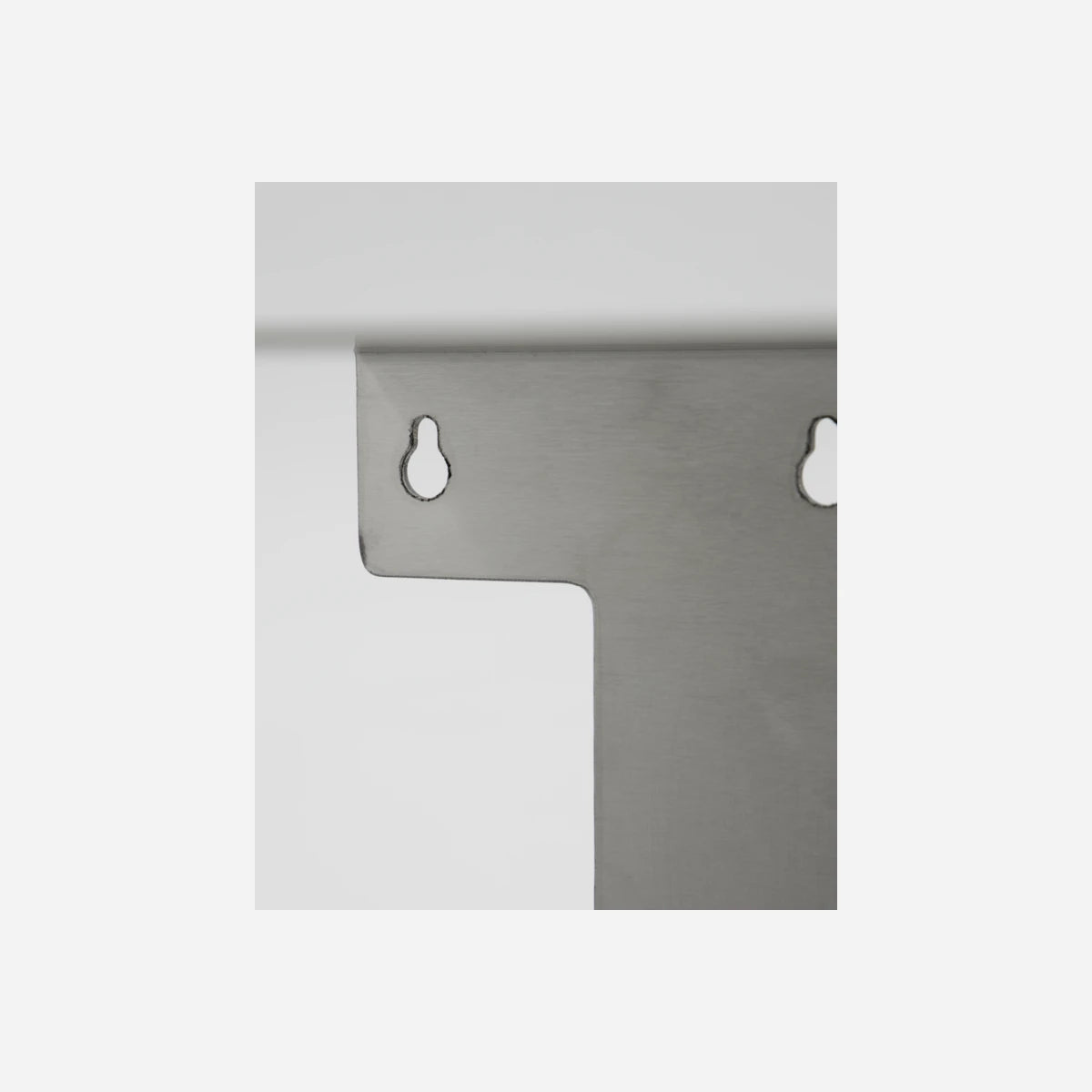 Modern minimalism meets enduring quality with this shelf in brushed silver stainless steel.