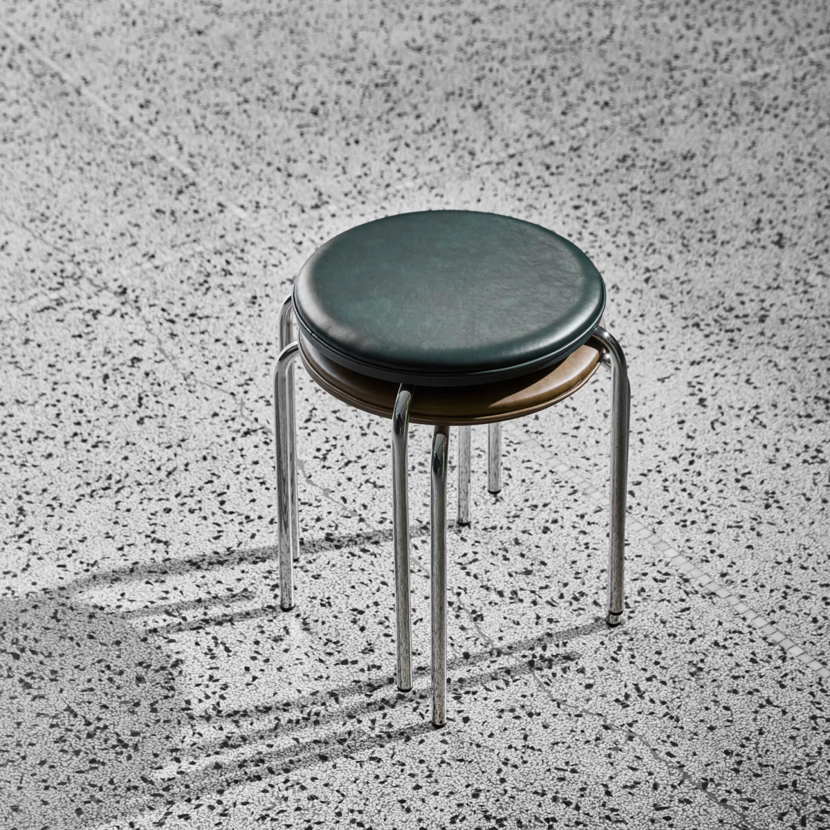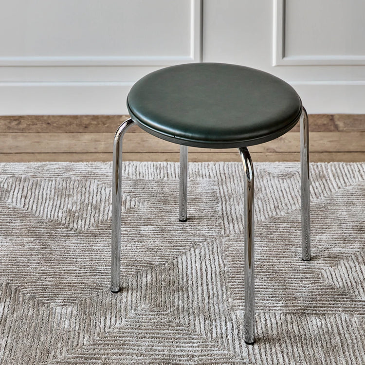 With a modern chrome frame and deep green faux leather seat, this stool adds a pop of timeless style wherever you place it. Enjoy as an eye-catching feature in your bedroom, hallway, or at the dining table.