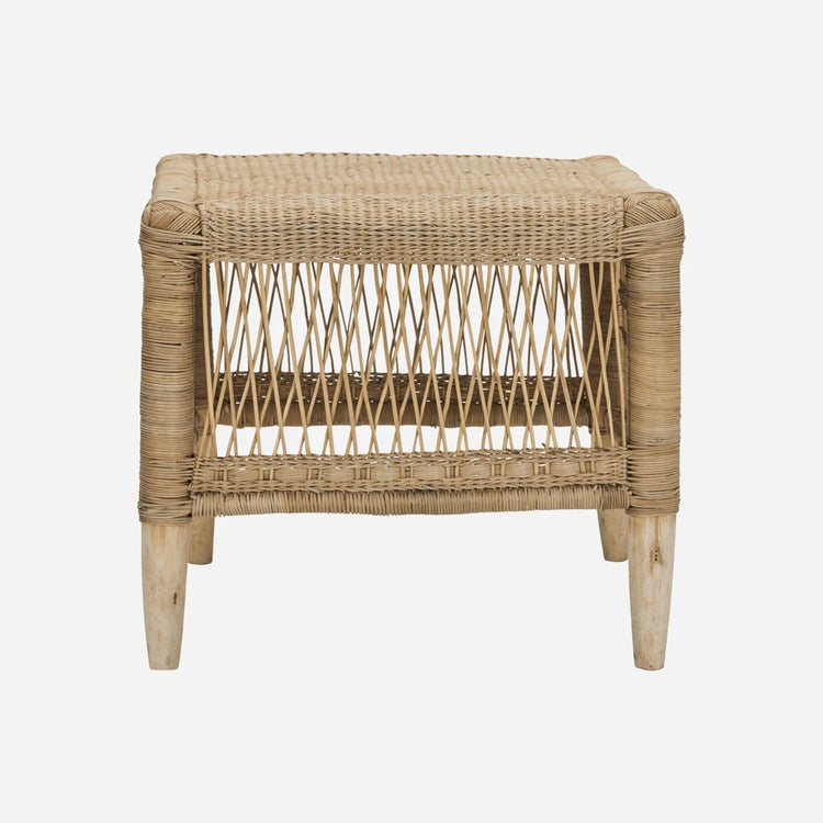 Handcrafted from eucalyptus wood and handwoven rattan, this stool adds an airy and intricate touch to any room. Each piece is uniquely made, bringing a natural elegance and individuality to your decor.- Handcrafted eucalyptus wood- Intricate rattan weaving- Unique, no two alike- Supports up to 110 kgEnhance your home with this exquisite and unique stool. Order now and enjoy its natural beauty.