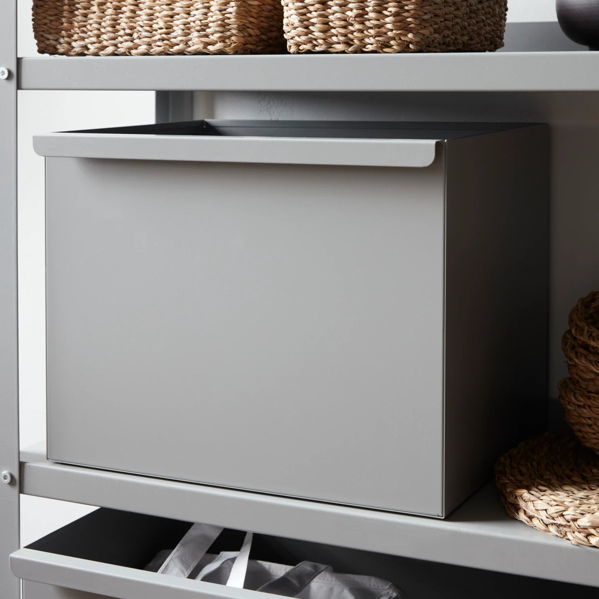 Streamline your shelving system with this sleek storage unit, where industrial sophistication meets practical design. Expertly crafted from durable steel with a refined grey finish, it offers a harmonious blend of contemporary style and reliable functionality for your everyday storage needs.