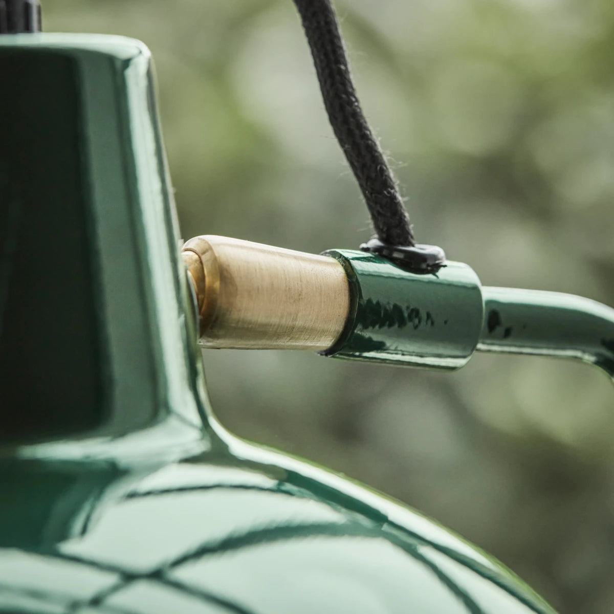 Providing a decorative flair and functional illumination, this table lamp combines modern and classic aesthetics. Its green enamel finish and white interior shade enhance any room, whether placed in the office, living room, or beside the bed.- Industrial green enamel finish- 2.5 m black fabric cable- White interior for better light- Durable iron and brass constructionAdd a touch of colour and elegance to your space.
