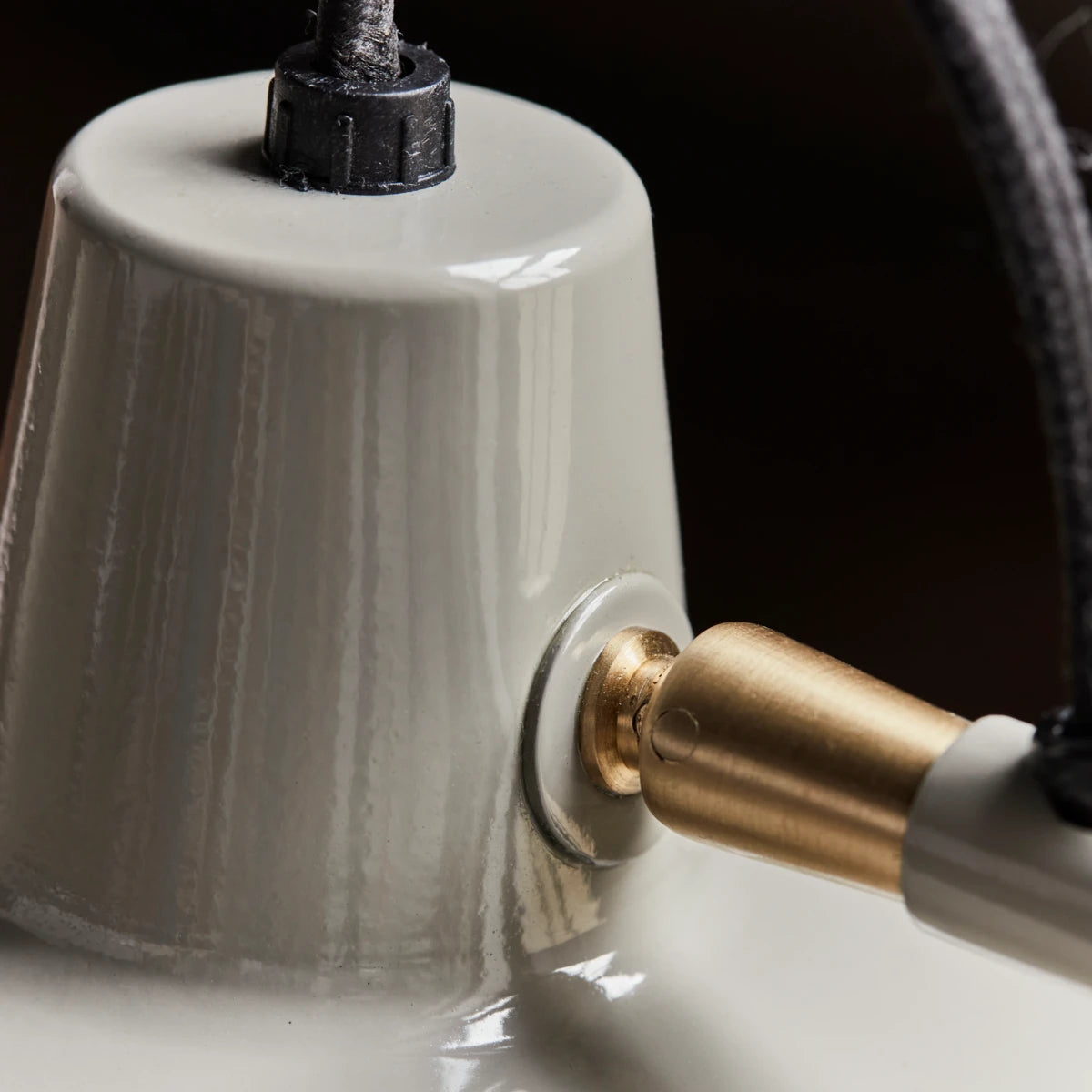 With this elegantly designed table lamp, you can add a touch of modern industrial flair to any room. This grey lamp combines sleek lines and a smooth enamel finish, making it both contemporary and timeless. Perfect for your office, living room, or bedside, it effortlessly enhances any space.- Industrial design, enamel finish- Versatile for any room- 2.5 m black fabric cable- White inside shade for brightnessIlluminate your space with style and sophistication.