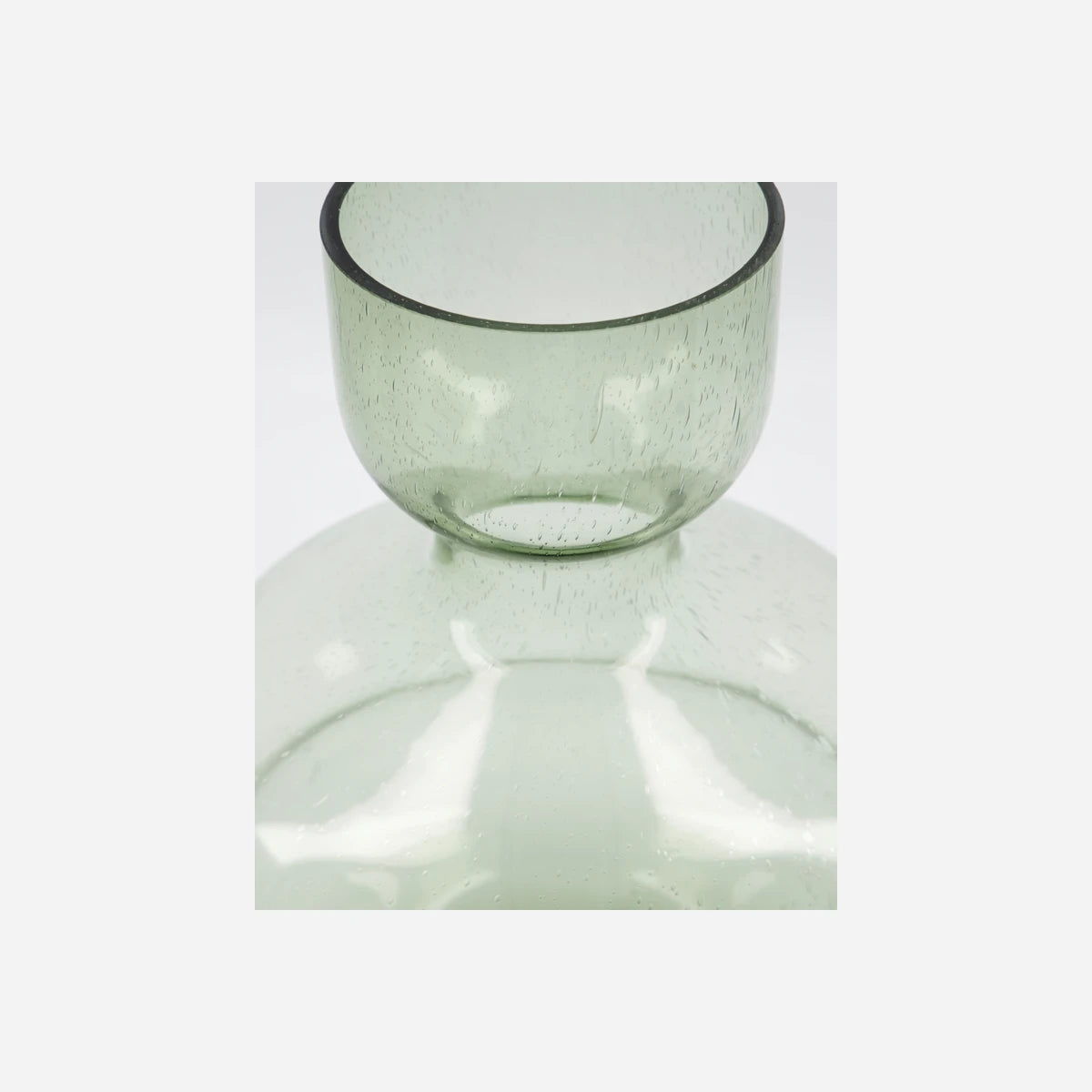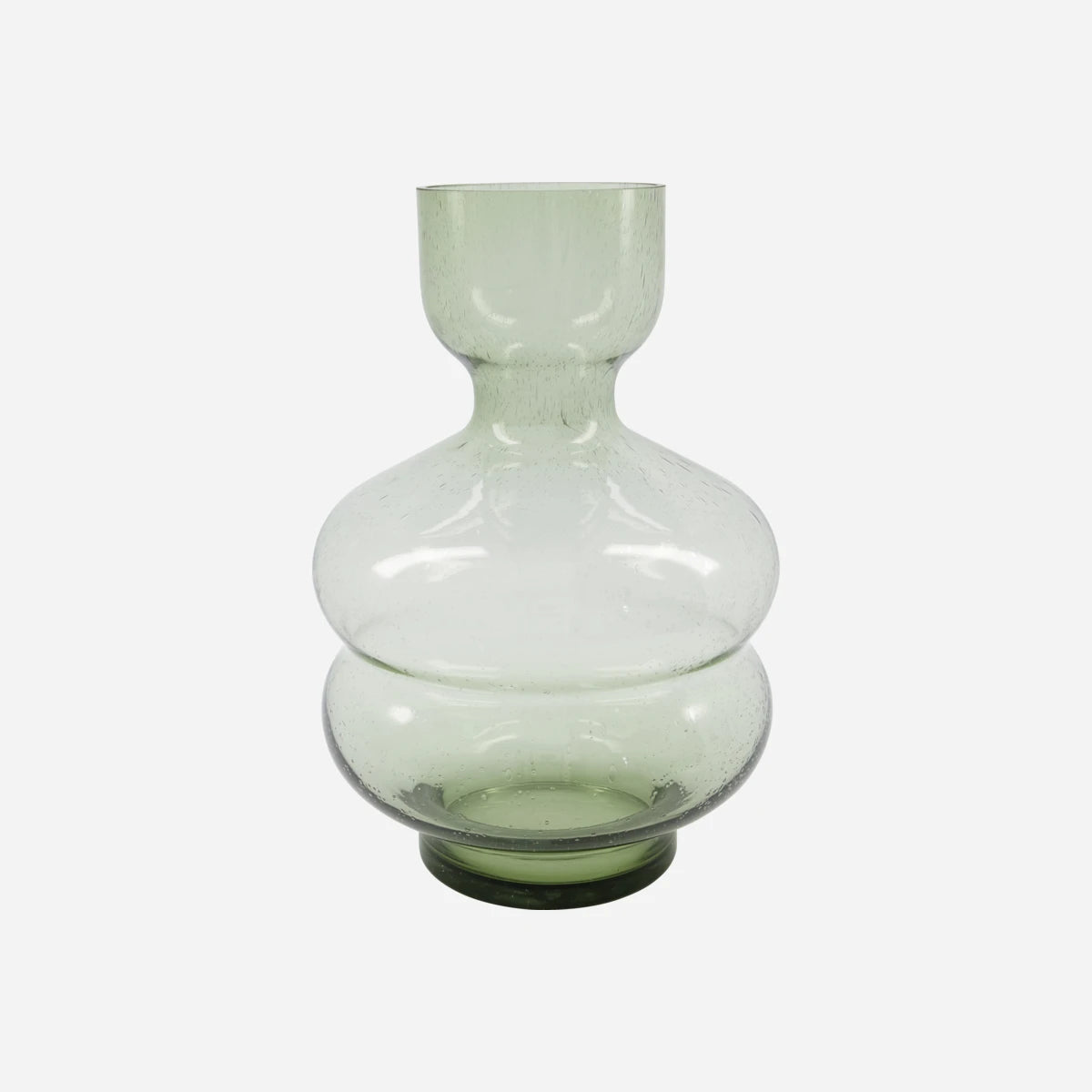 A sculptural look and subtle detailing come together in this glass vase from House Doctor. If you take a closer look, you will notice tiny air bubbles which add character and a light appeal to the design, especially as the sunlights hits the light green colour. The narrow opening is ideal for tall flowers, whether it is a fresh bouquet or dried ones. Without flowers, Organi is a convincing and elegant piece of décor which elevates your living room. It also works well in a light and airy display with the other Organi vases.