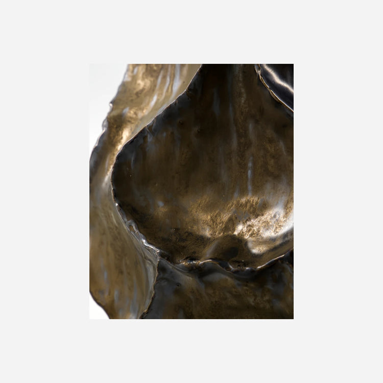 This handmade stoneware vase adds an instant wow factor with its antique metallic glaze and sculptural, organic form. Let it stand alone as a statement art piece, or pair it with striking branches and fresh flowers to express your own style.