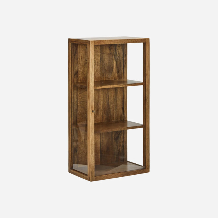 Enhance your living space with this elegant hanging cabinet, crafted from natural mango wood and tempered glass. Featuring three shelves and a sleek metal handle, it offers a charming way to display your favourite items while adding a touch of sophistication to any room.- Natural mango wood- Tempered glass panels- Small, stylish metal handle- Three spacious shelvesAdd a touch of elegance to your home decor.