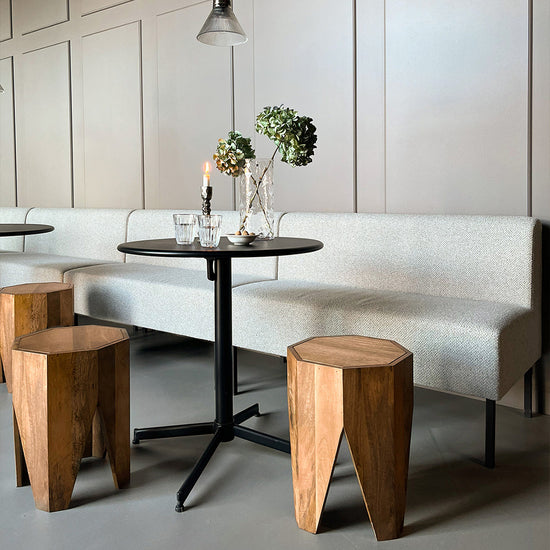 Okta is first and foremost a stool for extra seating in any room. But it is so much more. Use it to give your living room a sculptural twist by placing it on its own or by placing a vase or table lamp on top. If you are having guests over, use Okta as an impromptu chair by your sofa.
