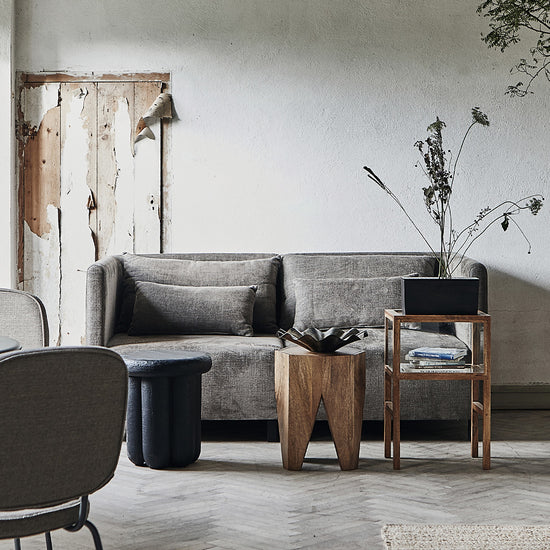 The sleek, graphic design comes together with the warm glow of the mango wood, adding contrast to your seating arrangement and home textiles.