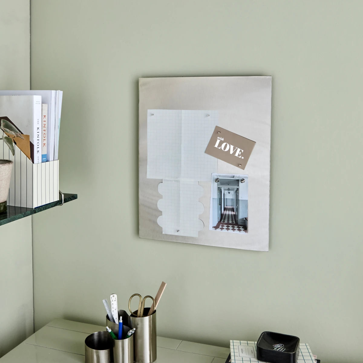- Can be used as magnetic pinboard.
