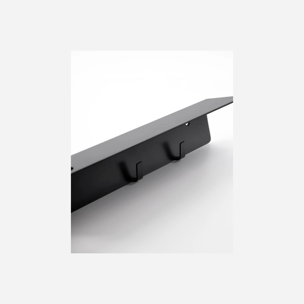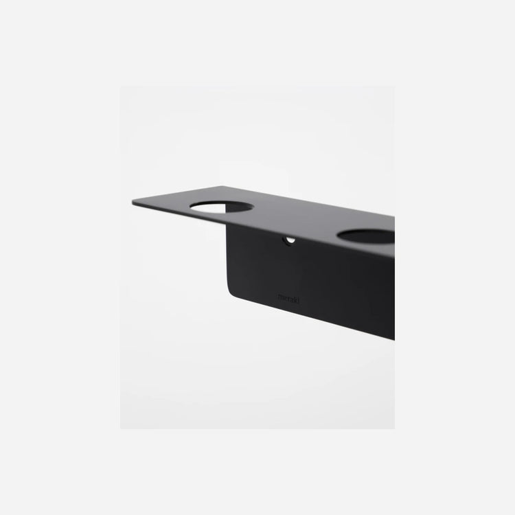 Free up space and give your bathroom a quick update with this bottle hanger with hooks from Meraki. There is room for 3 hanging bottles, products on the shelf above and even your loofah and other accessories on the hooks. The stainless steel has been given a brushed black finish that does not allow any water to penetrate. Whether you place it in the shower or on the bathroom wall, this bottle hanger instantly updates your space and keeps it tidy.