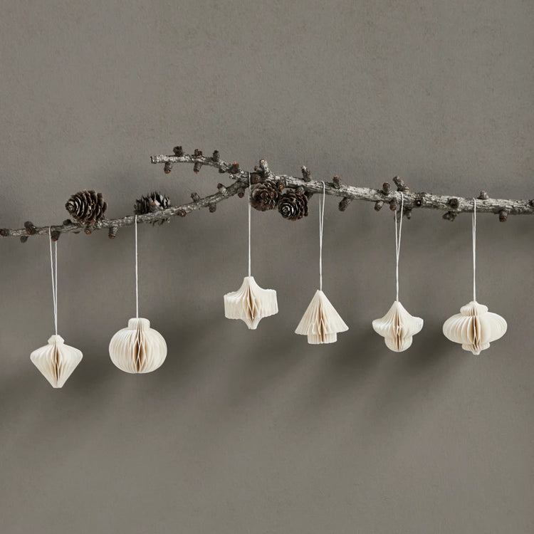 Casual ornaments make all the difference on your Christmas tree. This set of 6 off-white paper ornaments from House Doctor comes in 6 different designs to bring some variety and a wintery feel to your tree. Mix with your favourite baubles and other ornaments to create a unique look; whether it's on your Christmas tree, a branch suspended from the ceiling or on the wall.