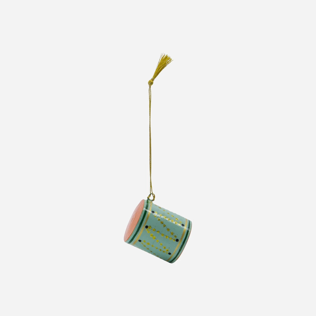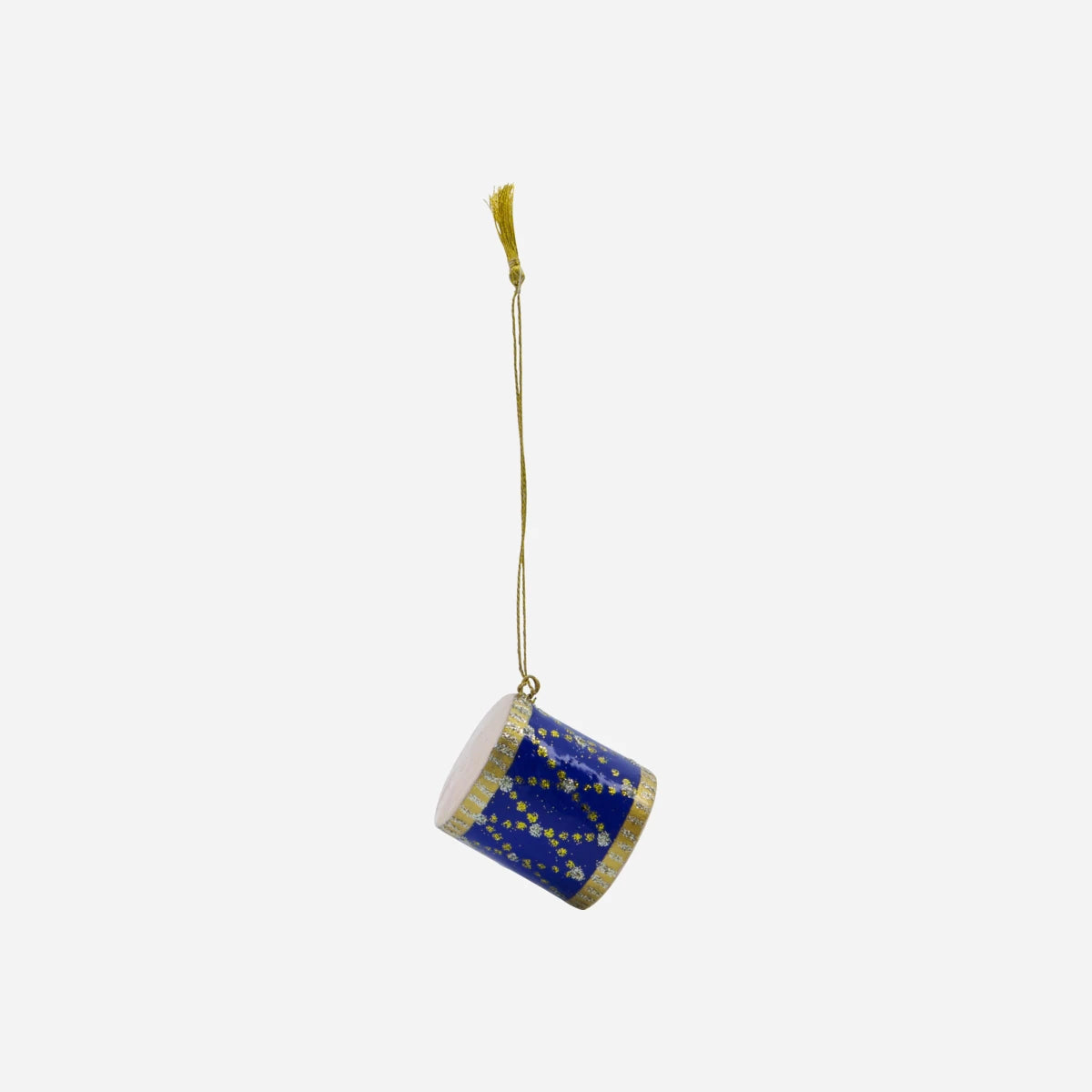 Transform your holiday decor with this exquisite set of drum ornaments. Handcrafted from FSC recycled wood, each ornament boasts a unique hand-painted pattern in dark blue, green, and beige. Perfect for adding a cosy touch to your Christmas tree or hanging on a branch, these ornaments bring a touch of tradition and elegance to your festive space.