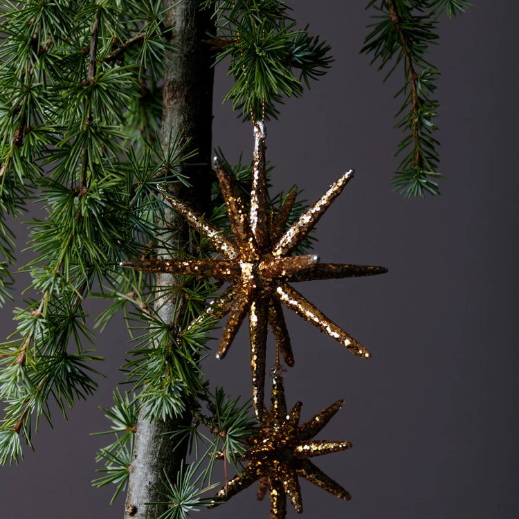 Create a magical Christmas decoration with little effort. This pack of 4 large stars from House Doctor is made of glass with brown glitter. Hang them on your Christmas tree, place them in a decorative tray or use them to decorate your dinner table for festive get-togethers. For a balanced look, mix the stars with other materials and similar shades of brown and neutrals.
