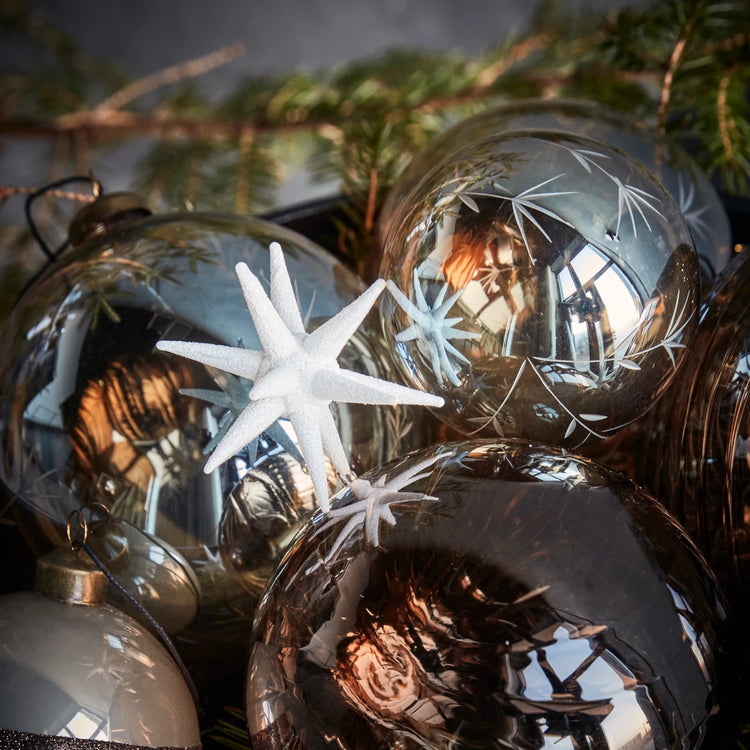 Create a magical Christmas decoration the easy way. This pack of 4 small stars from House Doctor is made of glass with white glitter. Hang them on a branch, on your Christmas tree or use them to decorate your dinner table for festive get-togethers. For a light and winter wonderland look, combine the stars with silver and other shapes for balance.