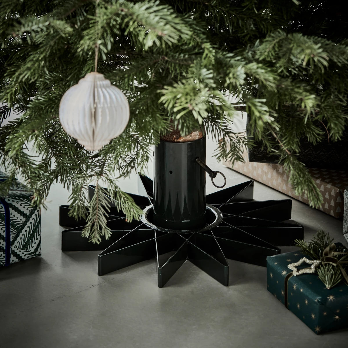 Elevate your festive decor with this elegant Christmas tree stand. Crafted from durable iron, it features a classic dark green hue that complements any holiday setting. The 12-point star design adds a stylish touch, while adjustable screws in an antique brass finish ensure your tree remains perfectly upright. This stand beautifully completes your Christmas tree's look, offering both function and flair.
