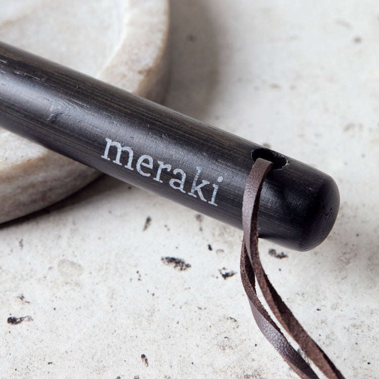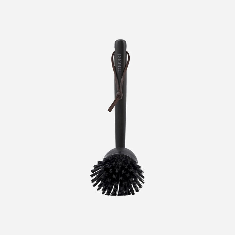 This dish brush from Meraki is the perfect companion for your dish soap. Made of bamboo, it has been given a black stain that lets the wood grain shine through. The handle gives you a comfortable grip while the brush itself is replaceable to prolong the longevity of the dish brush (item number 304870043). When you are done using the dish brush, simply hang it on a hook thanks to the strap. Because of the nature of the black stain, the colour might fade over time.