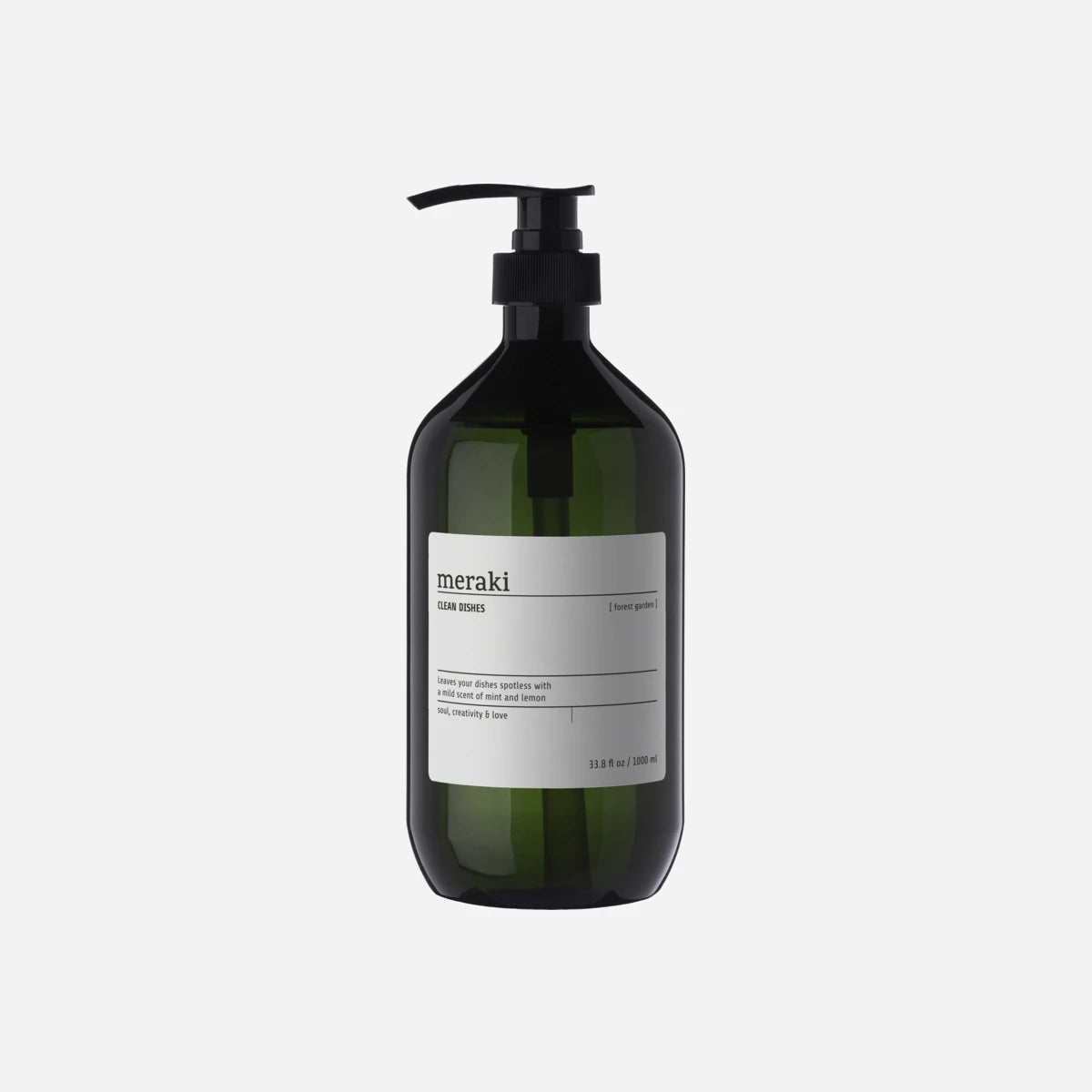 This dish soap called Forest Garden from Meraki is effective with notes of mint and lemon. The dish soap is both practical and decorative in your kitchen, as you can leave it out on the kitchen counter as a detail. We recommend using 2 ml for 5L water. The dish soap may not be used in the dishwasher. Certified by the Nordic Swan Ecolabel. 1000 ml.