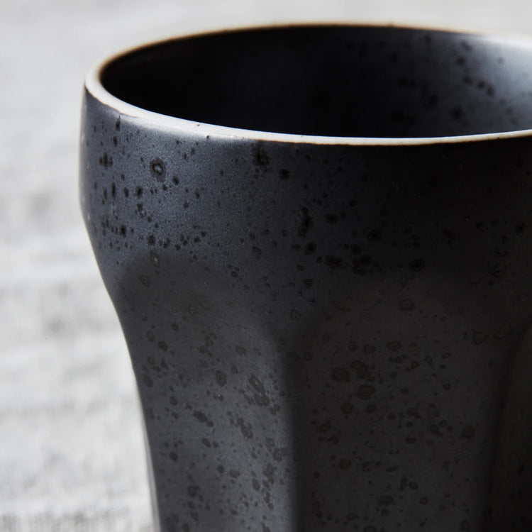 Sometimes you just need an extra dose of caffeine. This stoneware espresso cup called Berica does not have a handle but rests comfortably in your hand, thanks to the fluted shape. House Doctor has given it a unique surface that looks oxidised with its irregular black colour and tiny stains. Set a breakfast table with plates and cups in a similar look or mix with a range of textures and glazes for a personal table arrangement that awakens the senses.