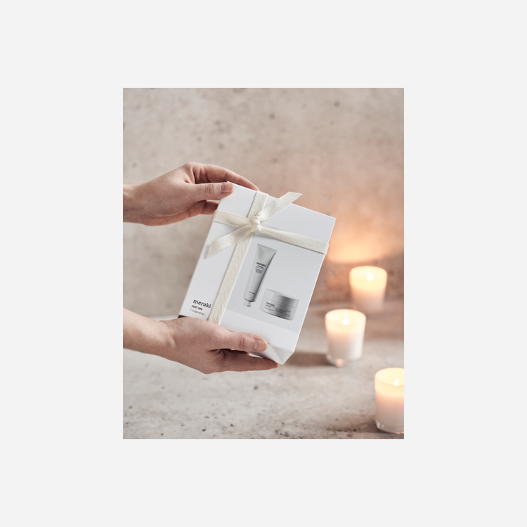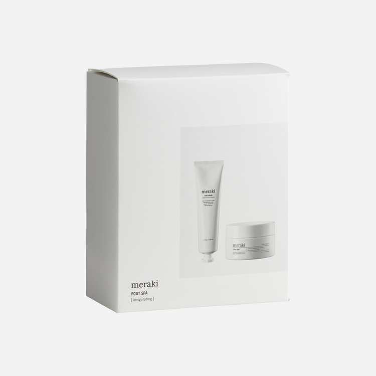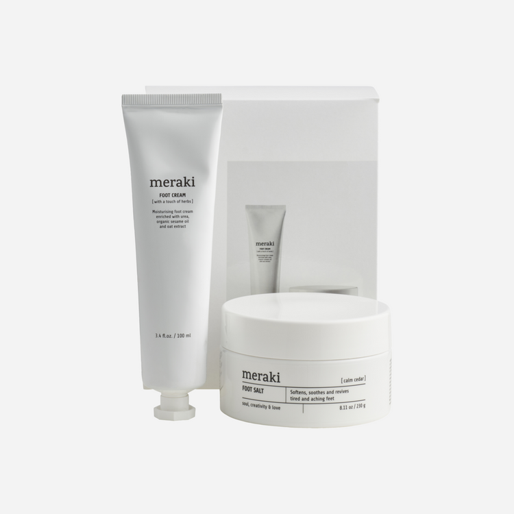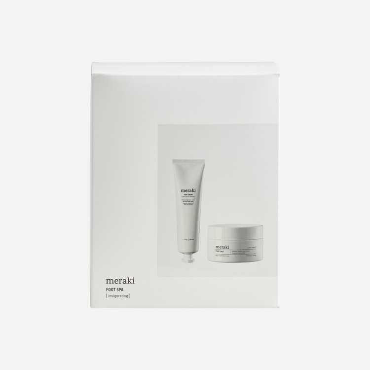 Spoil a friend or loved one with this gift set from Meraki. It contains a foot salt and a foot cream which relieve and reinvigorate tired feet. The foot salt softens, soothes and revitalises your feet after a long day. Relax and take a well-deserved time out with a foot soak while you enjoy the energising scent of eucalyptus, mint and lime. Finish with the foot cream which softens and nourishes your feet with ingredients such as an organic oat extract and organic sesame oil. It comes with a wonderful scent of sweet oranges, patchouli and cedarwood. The foot salt is certified by ECOCERT Natural.