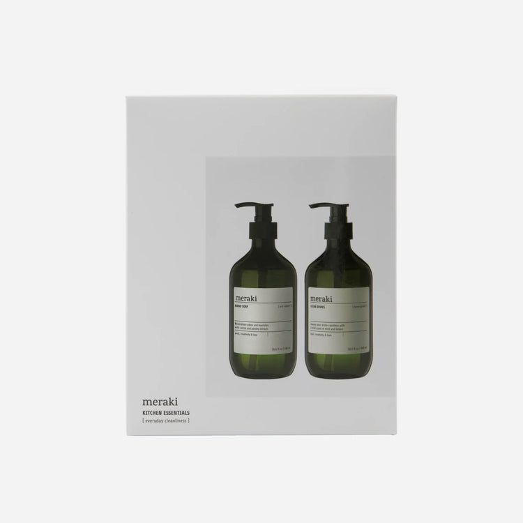 This gift box from Meraki consists of an anti-odour hand soap and a dish soap. Essentials for your kitchen. The dish soap is called Forest Garden, carries the Nordic Ecolabel and makes your dishwashing a breeze with its notes of mint and lemon. Get rid of those unwanted smells from cooking with the anti-odour hand soap. Its light, minty floral scent neutralises odour from food such as onions and seafood, while betaine keeps your hands soft and strengthens the skin barrier.