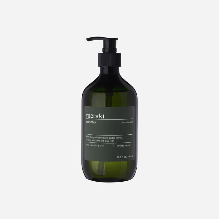 A gentle and effective, certified organic hand soap that cleans and nourishes the skin. Harvest Moon from Meraki nourishes and moisturises the skin thanks to glycerine, aloe vera, olive oil and extracts from cactus. Certified COSMOS organic by Ecocert.