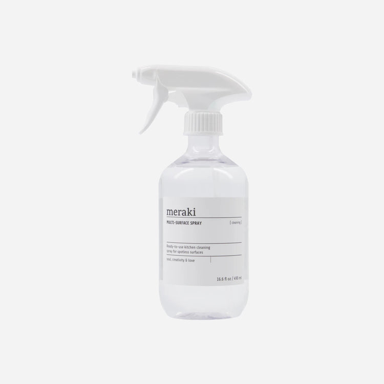 The multi-surface spray from Meraki is the everyday cleaning hero for your home. When you are having guests over, this ready-to-use spray takes care of your last-minute cleaning and leaves a light floral and citrus scent. Enjoy spotless surfaces, from stainless steel countertops to your dining table, doorknobs and sink. With its degreasing effect, it is particularly ideal for your kitchen and maintaining a good hygiene after preparing and cooking food. Simply spray onto the surface and wipe off with a soft, damp cloth. Suitable for all washable surfaces.