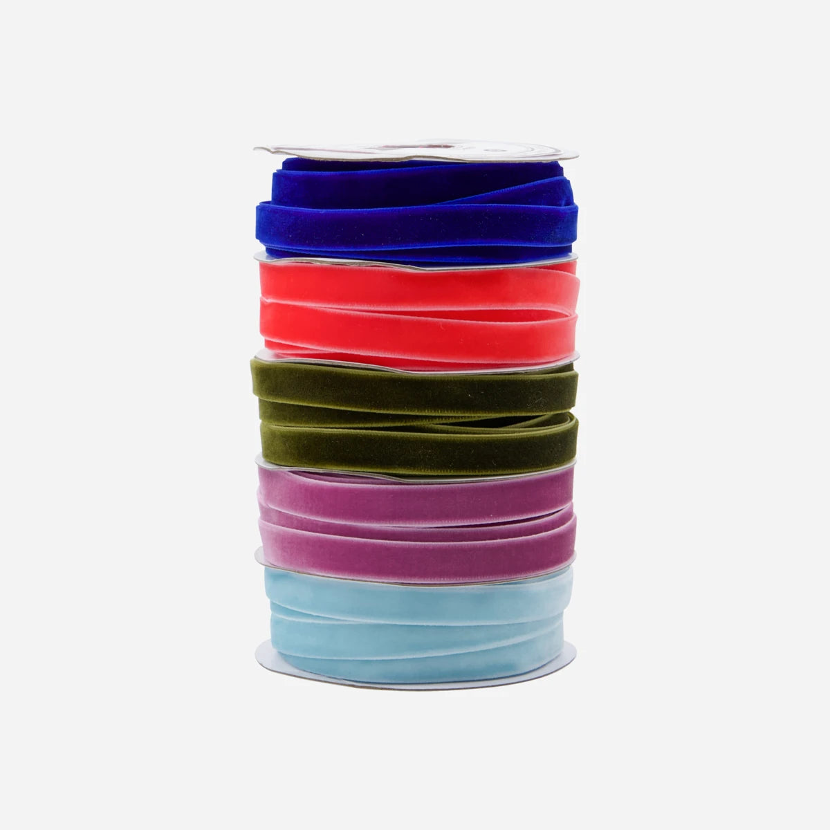 Add a personal touch to your gift wrapping with this set of velvet-look ribbons. Featuring a soft, plush quality, these ribbons come in five elegant colours: blue, coral, dark green, purple and light blue. Perfect for creating beautiful and unique presentations, whether paired with HDWrap or your own creative projects, these ribbons add sophistication to any gift.