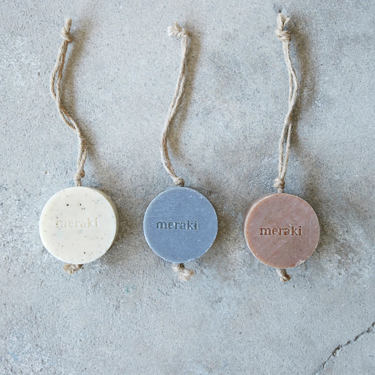 This round soap bar with a string from Meraki gives your hands a gentle exfoliation thanks to a sesame scrub. Formulated with essential oils from spearmint, cedarwood and eucalyptus, enjoy a cooling and invigorating effect as you use the soap. Hang the soap bar on a hook to keep your sink neat and clean.