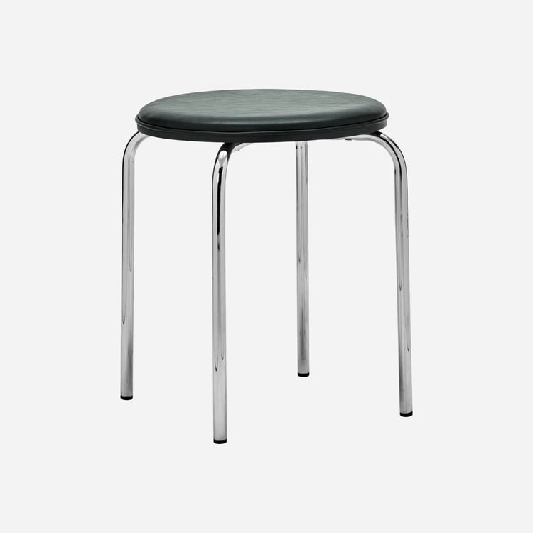 With a modern chrome frame and deep green faux leather seat, this stool adds a pop of timeless style wherever you place it. Enjoy as an eye-catching feature in your bedroom, hallway, or at the dining table.