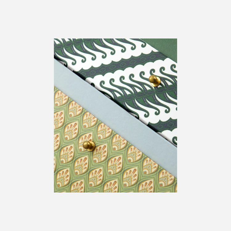 Bring a stylish touch to your home office with these beautiful cardboard storage boxes. Available in khaki and green, these boxes feature two unique designs and sizes, offering both practicality and aesthetic appeal. The elegant closure with a gold button and black elastic ensures easy access and secure storage. Inside, the boxes boast a solid colour that complements the external patterns. Ideal for organising your essentials, they add a cosy and sophisticated touch to your home office.