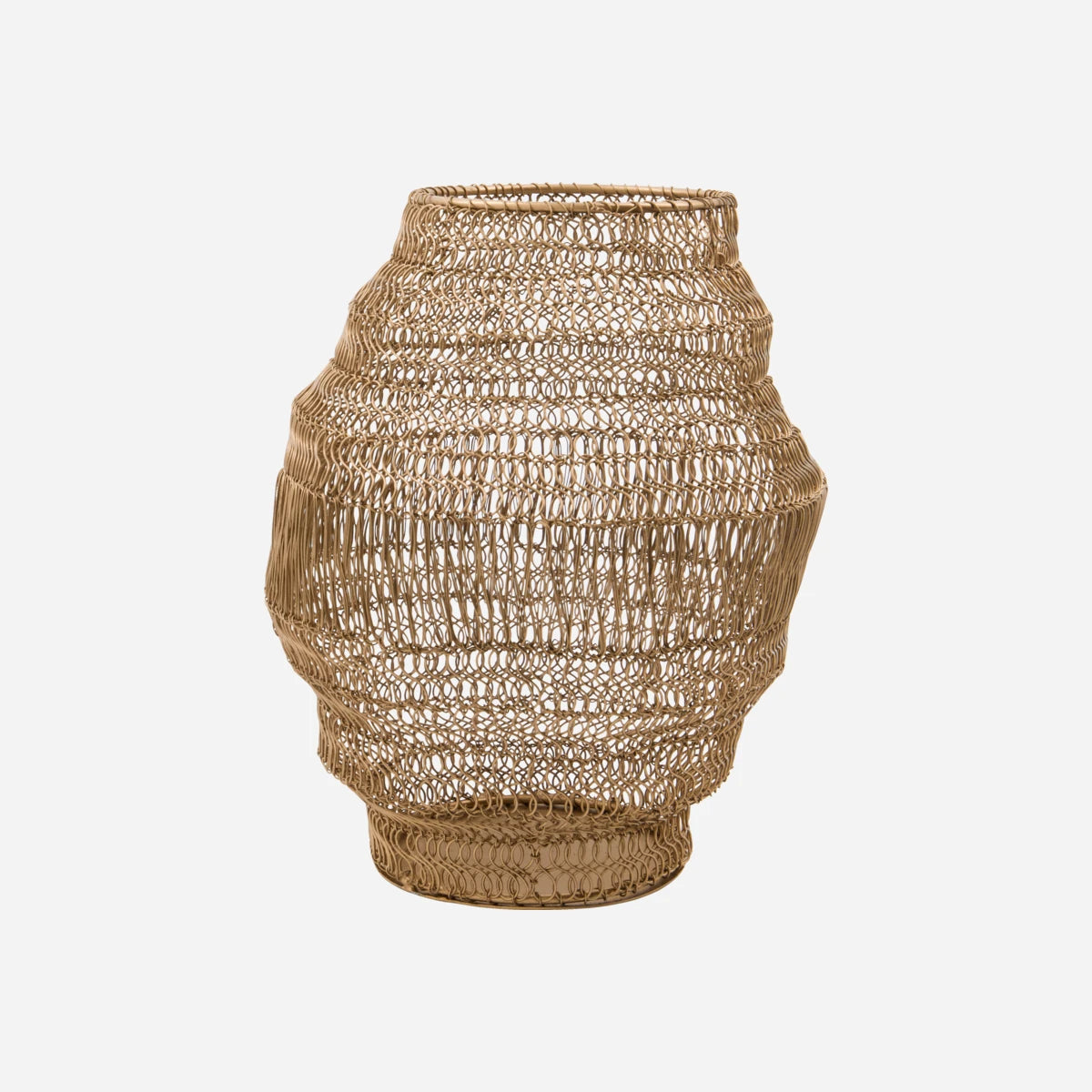 Handmade from iron wire, this golden tealight holder exudes unique charm and elegance, adding a personal touch to any setting.- Unique handmade design- Elegant golden colour- Iron wire construction- Adds personal styleIlluminate your space with this unique tealight holder.