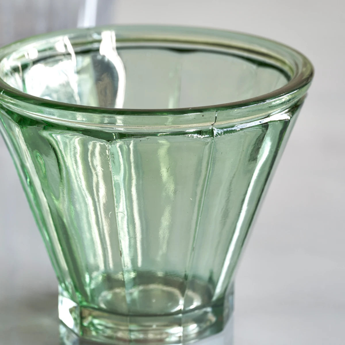 This handmade tealight holder called Fren is inspired by vintage French jam jars. Its charm lies in the ridged surface and otherwise simple look which suits any interior style. Even though the green glass has a heaviness to it, the tealight holder from House Doctor is light in apperance and brings a splash of subtle colour to your home décor. For a complete display with a striking effect, combine it with the smaller version and the transparent ones as well.