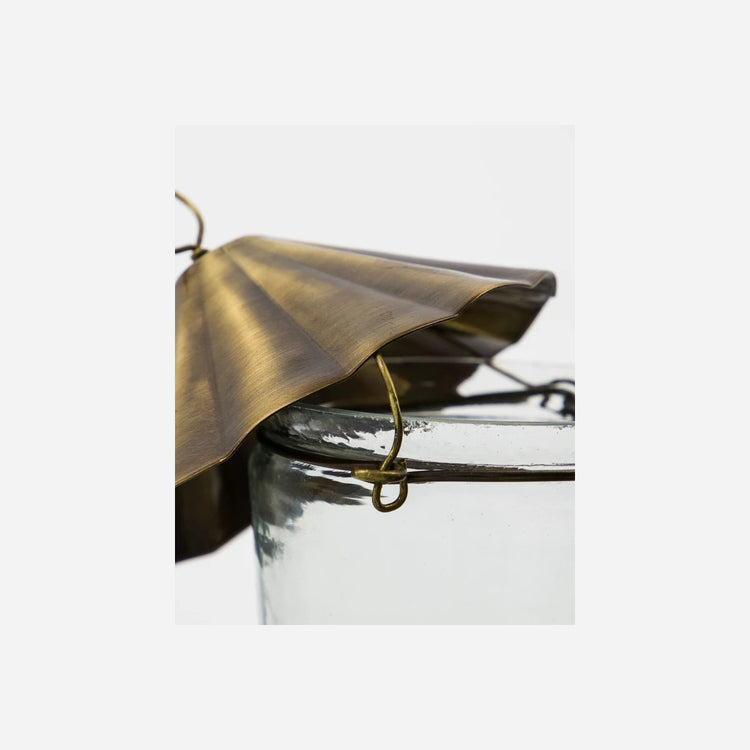 Elevate your festive decor with this exquisite tealight holder, a blend of elegance and charm. Handcrafted from glass with a subtle green tint and delightful bubbles, it exudes uniqueness. The antique brass metal top lifts effortlessly, allowing you to place a tealight within. Perfect for hanging or setting on a table, it creates a cosy, warm glow. Group several together for a captivating display.