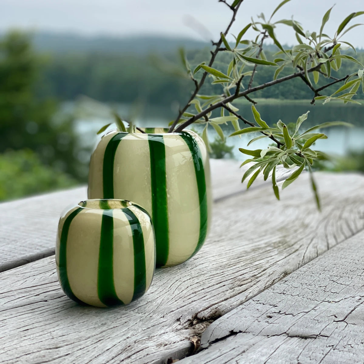 Give your home décor a dose of charm with this candy stripe tealight holder from House Doctor. The green glass tealight holder is called Hope and injects a dash of colour into your living room. Pair it with other glass home décor or let it stand out among neutral colours on your windowsill, coffee table or shelf.