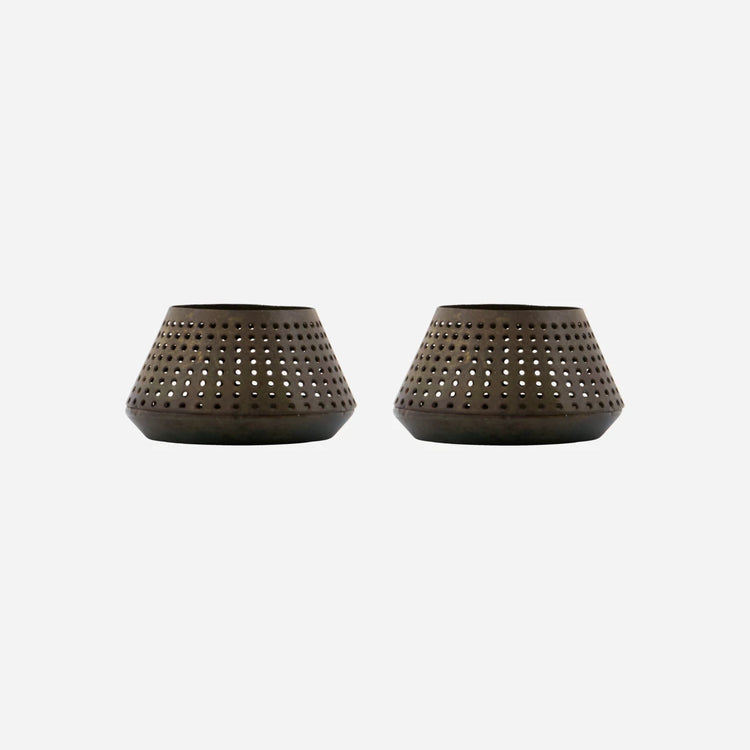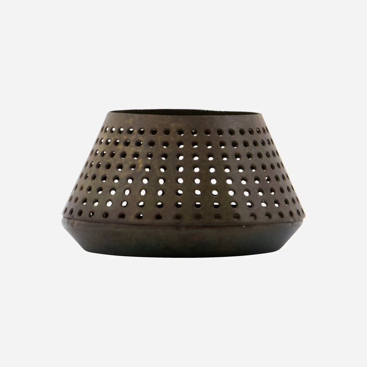 Crafted from iron, this antique brown tealight holder adds a rustic charm to your space. Its handmade nature ensures each piece is unique, making it a distinctive accessory for any room.- Handmade uniqueness- Rustic antique brown finish- Iron construction- Ideal for tealightsEnhance your home decor with this charming tealight holder.