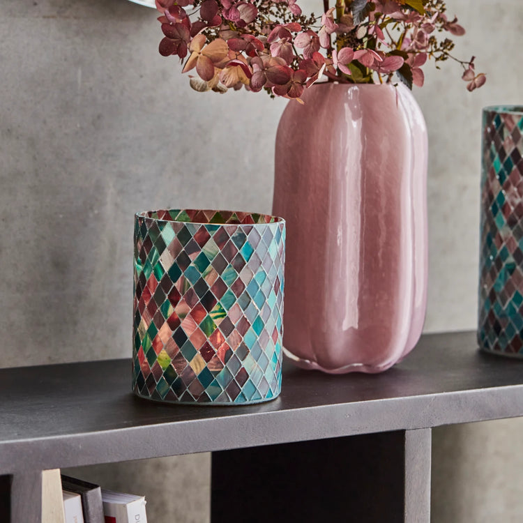 A bit of detail goes a long way. This tealight holder from House Doctor adds subtle colour and texture to your living room. The brown and green pattern is made of mosaic which adds a wonderful contrast to other materials and decor with sleeker surfaces. Let the tealight holder stand out in a display on the coffee table or highlight it in the windowsill. Sometimes a tealight holder is all it takes to refresh your home.